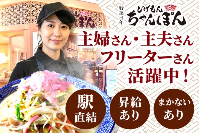 | 職種名 | ちゃんぽん店のホールスタッフ カフェスタイルのおしゃれな店内 未経験可 オープニング 1日3時間から勤務可 |