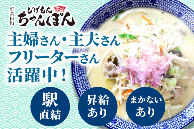 | 職種名 | ちゃんぽん店のキッチンスタッフ 未経験可 オープニング 1日3時間から勤務可 社員登用あり |