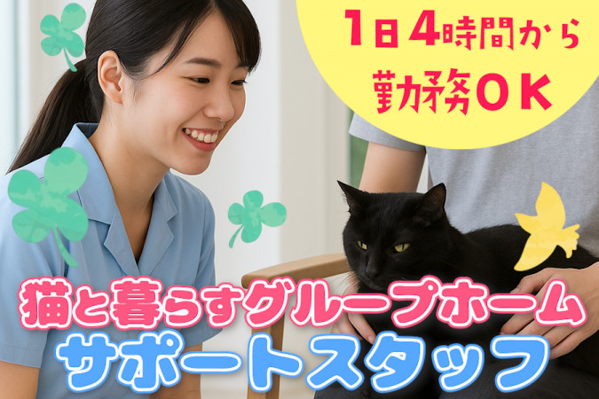 ■必須条件 ・普通自動車運転免許(AT限定可) ※無資格、未経験OK ・家庭調理ができるレベル ・ペット(猫)が大丈夫なこと ■優遇条件 ・障がい者施設または介護施設での勤務経験 ・介護支援専門員や介護福祉士などの資格 【こんな方にぴったりです】 ・人と関わるのが好きな方 ・猫が好きな方 ・福祉関係の仕事に興味がある方 |