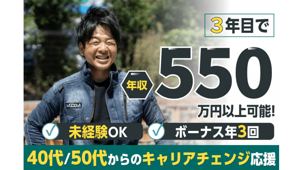 \お客様の新生活を支える、やりがいの大きな仕事です/ 建設土木企業で重機オペレーターを正社員募集! ――――――――――――――――――――― ★重機オペレーターの魅力ポイント★ ――――――――――――――――――――― ▶賞与年3回+各種手当ありで、月45万円も目指せます! ▶日曜休み/土日祝休みを選んで取得可能! ▶残業少なめ&直行直帰OK ▶寮社宅ありで社員の住まいもサポート ――――――――――――――――――――― 《重機オペレーターの仕事内容》 主に一般住宅の基礎工事に携わっていただきます! ・ユンボ/クレーンなどの建設用重機械操作 ・ブルドーザーでの掘削作業 ・土砂/資材の運搬 ▶東京/埼玉/神奈川/その他一部地域での工事となります |未経験OK!資格取得も支援します 現場作業や重機オペレーターの経験/知識は不要です! 一人ひとりに指導員がつき、道具の名前から丁寧に教えていくので 年齢/経験問わず業界に飛び込めます◎ 《キャリアアップ応援!》 当社では、社員の昇進/独立を前のめりになってサポートしています 必要器具のレンタルや書類作成など事務作業の教育も行い、 ゆくゆくは職長/親方/管理職も目指せます! |キャリアイメージ 経験3年:年収550万円 経験6年:年収670万円 経験10年以上:年収800万円 《1日のスケジュール例》 06:30 会社集合 08:00 現場到着・作業開始 17:00 作業終了・現場出発 18:00 会社到着・解散 ▶休憩時間:10:00/12:00/15:00(午前・昼・午後) 《会社について》 私たち株式会社M.D.Mは住宅基礎工事を主に手掛ける建設会社です 売上高は、一昨年5億→昨年度6.5億→今年度8.5億と右肩上がり! お客様からの感謝の言葉はとても大きなやりがいに繋がるため、 社員には沢山感謝を貰えるような職人になってもらうべく、社内教育に力を入れています 《職場環境について》 現在、40代~50代の社員が活躍しています 休日に一緒に出掛けることもあるほど社員の仲は良好! 現場状況は社員同士常に把握し、困ったことがある際は チーム全員で声を掛け合ってすぐにフォローしています カジュアル面談実施中♪履歴書当日ご持参ください WEB面接も可能です!重機オペレーターに少しでも興味があればご連絡下さい♪ Instagram更新中!▶eri.akagi05 |
