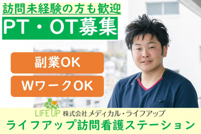 週3日~5日の希望シフトでOK!扶養範囲内・社会保険加入ともにご相談に応じます!Wワークも副業もOKです! 訪問看護ステーションでのリハビリ職(セラピスト:理学療法士・作業療法士)募集! 訪問未経験の方も大歓迎!ブランクある方も大歓迎! ◎子育て中の方も大歓迎!(無料託児所あり) 研修制度も勉強会も充実していますし、経験豊富なセラピストも多数在籍していますので、自分のスキルを高めていきたい方にも最適な環境です。 ■仕事内容 訪問看護ステーションでのリハビリ業務をお願いします。 ・主治医に報告するための健康状態チェックと記録 (体温・血圧・脈拍・呼吸など) ・指示書に基づいたリハビリ対応 ・健康に関するアドバイス ・利用者様、ご家族様のメンタルサポート など 法人内研修:2ヶ月に1回実施 介護に関する知識を深めております。 ■訪問エリア 瑞穂区・昭和区・南区・千種区・天白区・熱田区・緑区・中川区が中心 ※ルートによって直行直帰のご相談いただけます ◎名古屋市内に4事業所(希望勤務地ご相談に応じます) ・ライフアップ訪問看護ステーション陽明/名古屋市瑞穂区田辺通 ・ライフアップ訪問看護ステーション山王/名古屋市中川区西日置 ・ライフアップ訪問看護ステーション平針/名古屋市天白区平針 ・ライフアップ訪問看護ステーション 御器所/名古屋市昭和区緑町 【PRポイント】 ◎連携職種との情報交換等が多く交わされる、コミュニケーションが円滑な明るい職場 ◎症例検討会や技術向上等の勉強会を定期的に実施 ◎福利厚生が充実した子育て世代でも働きやすい環境 【子育て世代応援企業】 託児所(御器所から徒歩約1分)に無料でご利用いただけます。 【株式会社メディカルライフアップ】 代表取締役:森 勝也 設立:平成24年6月 本社所在地:愛知県名古屋市瑞穂区陽明町2丁目31番地 事業内容:・リハビリテーション事業・訪問看護ステーション運営事業・医療、介護、トレーニング関連用品販売 ホームページは『 メディカル・ライフアップ 』で検索してみてください! ■インスタグラムでも発信しています! 詳しくは、「メディカルライフアップ インスタ」で検索してみてください! |