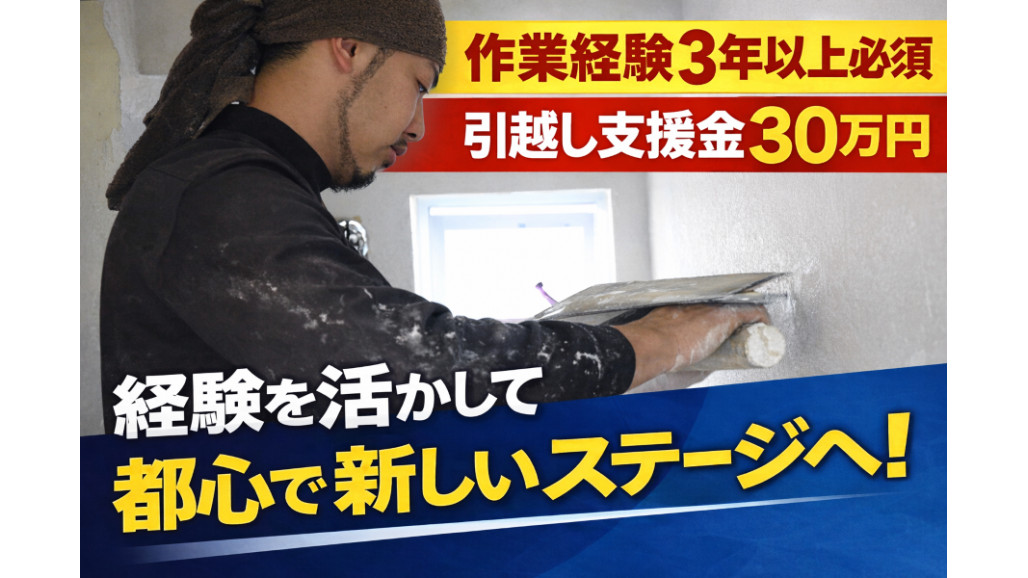 | 職種名 | 左官の現場作業員・建設工事 引越支援金30万円 前職給与保障 |