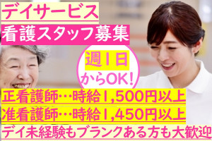 年齢不問!デイサービスの日勤看護スタッフ!週1日からOK!デイサービスや介護…