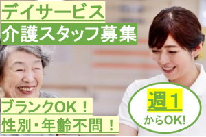 年齢不問!デイサービスの日勤介護スタッフ!週1日からOK!デイサービスや介護…