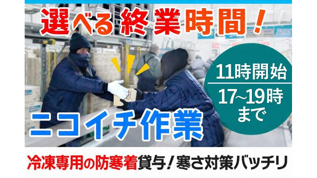 8月末までの短期募集求人!  ̄ ̄ ̄ ̄ ̄ ̄ ̄ ̄ ̄ ̄ ̄ ̄ ̄ ■時給1,400円・休憩時間も給与支給 ■土日祝のみ勤務!長期勤務もOK ■希望日にお休みできるから家庭と両立可能 ■作業は2工程のみ!すぐに作業できる 愛知県小牧市にある「小牧冷凍センター」にて、8月末までの短期スタッフの募集です! 期間が決まっているため予定を立てやすく、家庭や育児と両立しながら働きたい主婦(夫)の方にもおすすめ。 空いている期間を活用して、無理のない範囲で収入をプラスできます。 _________ ■ お仕事詳細 ■  ̄ ̄ ̄ ̄ ̄ ̄ ̄ ̄ ̄ 冷凍倉庫内にて、冷凍食品の仕分けやピッキング作業をお願いします。 ①決められた場所に商品を仕分ける ②指示書通り商品を台車等に入れる とっても簡単な作業ですが、もし不安な事や分からない事があればすぐ先輩がフォロー。安心して勤務いただけます。 また、重い物を扱う事もないので、負担少なく働きたい方にぴったりのお仕事です! ==================== せっかくなら色々安心できる会社がいい。 その素直な気持ちに応えられます! ==================== 当社は昭和48年設立の安定物流企業。食品以外にも自動車部品や郵便などを扱い、安定成長を続けています。 ・シフトや勤怠管理体制も整っている安心感 ・質問もしやすい穏やかな職場環境 ・無料駐車場完備で通いやすい 様々な働き方のスタッフが「働きやすい!」と思う環境を重視しています。 =================== 家庭の都合に合わせて働ける柔軟シフト✨ =================== 「家庭を優先しながら働きたい」 そんな方にぴったりの環境です。 朝はゆっくり家事を済ませてから出勤できるので、無理のない生活リズムで働けます。 土日祝のみの勤務なので、平日のお子さまの予定やご家庭の都合に合わせて、無理なくシフトを組むことが可能です。 「今の生活を崩さずに働きたい」 そんな想いに寄り添える職場です。 =================== 冷凍倉庫での勤務について =================== 勤務していただく倉庫の温度は、冷凍食品の取り扱いのため-25℃ですが、無理なく働いていただける環境をご用意しています。 ■寒さに負けないために 冷凍倉庫内でも対応できる防寒着をお貸ししますので、快適に作業をする事ができます。 ■休憩もしっかり! 寒い冷凍倉庫内での作業となるため、75分作業したら15分の休憩を取り、多めの休憩で体調面に配慮しています。 ■勤務時間を選べます! 1日6時間~8時間勤務で選べます。体力や本業の予定に合わせてシフトを決めてくださいね。 // 9月以降の働き方は ご希望に合わせてお選びいただけます。 \\ ▶期間満了までの勤務で終了する ▶そのまま継続して働く ▶希望や適性に応じて正社員を目指す 短期で実際の仕事を体験し、働きやすさを実感してからご判断いただけますよ。 ぜひ、ご応募ください! 【求人ID-KSES】 |