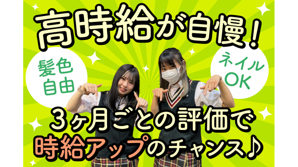 【POINT】 ■土日祝は時給100円UP ■深夜(22時以降)は時給25%UP ■3か月ごとの等級評価で時給UP ■交通費全額支給 |