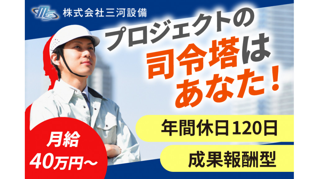 | 職種名 | チームを支える施工管理リーダー 完全週休2日制 フレックス導入 インセンティブあり オシャレな新オフィス |