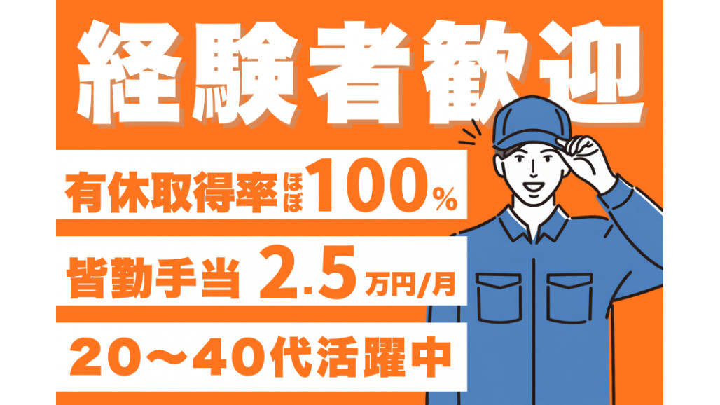 | その他 | 工場にて旋盤工や機械工、製造工などの正社員にて活躍していた方必見です。また工作機械加工、部品加工、機械オペレーターなどの経験も活かせます。当社では、20代や30代の若手から40代、50代の中高年の方も活躍しております。 |
