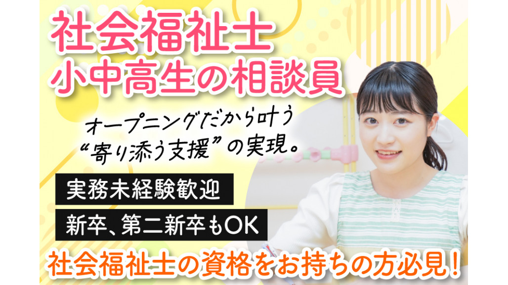 | 職種名 | 社会福祉士 小中高生の相談員 残業ほぼなし |