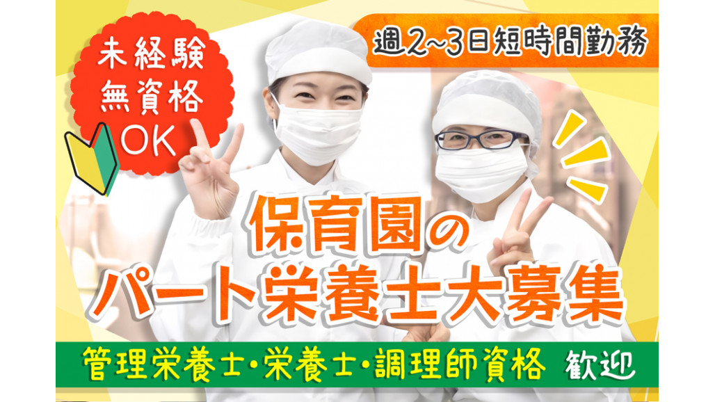 | 職種名 | 保育園のパート栄養士 研修充実 時短勤務 |