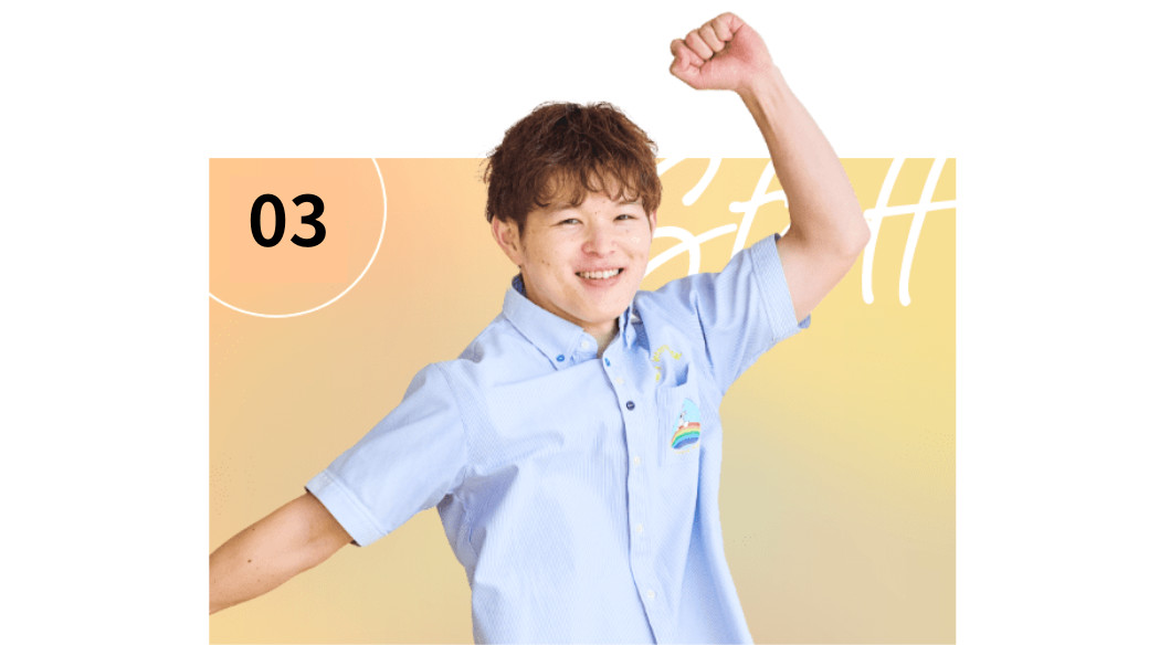 保育士になって初めて任された大きなイベントは「運動会」でした。こどもの練習や準備、職員との連携などやることがたくさんありましたが、一丸となって一つのものを作り上げていく日々はとても充実していました。本番当日は、こども達も保護者も楽しんでいただき、笑顔で終えることができ、とても印象的でした。