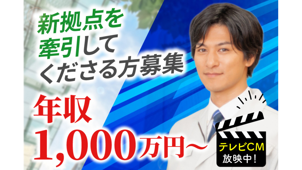 ※給与詳細は、経験・年齢・能力を考慮し決定。 【年俸制】 年収1,000万円以上を保証し、12分割にて毎月給与を支給します。 【インセンティブ制度あり】 給与とは別に年に1回、成果に応じて決算賞与を支給します。 【確かな収入保証】 転職の勇気を支える収入サポート制度があるので、安心して新しいキャリアをスタートできます。前職の給与を100%保証しますので、安心してご応募ください。 |