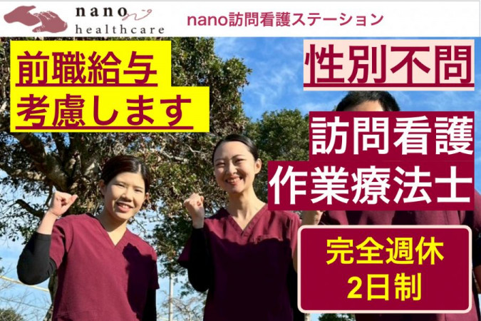 訪問看護ステーションの作業療法士募集します! 入職時期もご相談ください!(半年後、年度替わりなど) 【アピールポイント】 ・直行直帰OK ・完全週休二日制 ・残業ほぼなし(5h以下) ・30代~50代のスタッフが活躍中 ・面接は、お子様の付き添いもOKです! ■仕事内容 訪問リハビリ業務をお任せします。 対象疾患:小児科、精神科疾患が中心 一部、脳神経外科疾患、整形外科疾患、循環器内科疾患、呼吸器疾患、消化器疾患などの利用者様をお願いする場合がございます。 ■具体的な業務内容 ・発達障害児への成長発達の支援(児童精神、不登校児への対応、家族支援など) ・精神疾患の利用者様のリハビリ全般(運動、動作、生活、家族指導など) ・健康状態の観察・助言 ・計画書、報告書の作成 など ※1日の訪問件数5件~7件程度 ◎当代表について 当代表は、某著名人やスポーツ選手も通院していた初台病院での勤務経験を持ち、幅広い症例への対応力と専門性を培ってきました。 病院勤務時代にはリーダーとしてチームを牽引し、理学療法士をはじめとするリハビリ専門職と密に連携しながら、チーム医療の実践を積み重ねています。 特に、看護師とリハビリ職の垣根を越えた関わりを大切にしており、当時は看護師が自主トレによるリハビリをサポートする仕組みを整えるなど、利用者様の「継続的なリハビリの実現」に尽力してきました。 現在は、その経験を訪問看護の現場に活かし、在宅でも質の高いリハビリが提供できる体制づくりを推進しています。 リハビリを本気で大切にする環境で、あなたの専門性を存分に発揮しませんか? ■nano訪問看護ステーション 『人を愛し共に歩む』 を理念に掲げ、“人”を看る訪問看護を提供しています。 病院よりも出来ることは限られているけど、 訪問看護には、訪問看護の“役割”がある。 ご利用者様が、心安らげる環境であるご自宅で、 安心して最後を迎えられるようにする環境作りが私たちの役割です。 この想いに共感してくださる方は、 是非、私たちと一緒に地域貢献していきましょう! ✅ホームページやYouTubeで情報発信をしています もっと詳しく知りたい方は、「nano訪問看護ステーション」で検索してみてください。 ■こんな方におすすめ ・幅広い疾患のリハビリを経験したい方 ・病院を退院後の生活に興味のある方 ・利用者様に対して長く寄り添いたいと思っている方 ・家庭(子育て)と仕事が両立しやすい時短業務希望の方 ■お気軽にお問い合わせください。 いきなりの面接は不安な方には施設見学も大歓迎です。 働き方の相談や、仕事内容のご質問などのお問合せもお気軽にご連絡ください。 もっと詳しく知りたい方は、「nano訪問看護」で検索してみてください! |