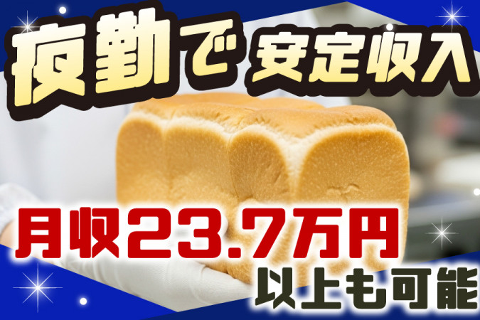 | 職種名 | パン工場での製造スタッフ 未経験可 夜勤 |