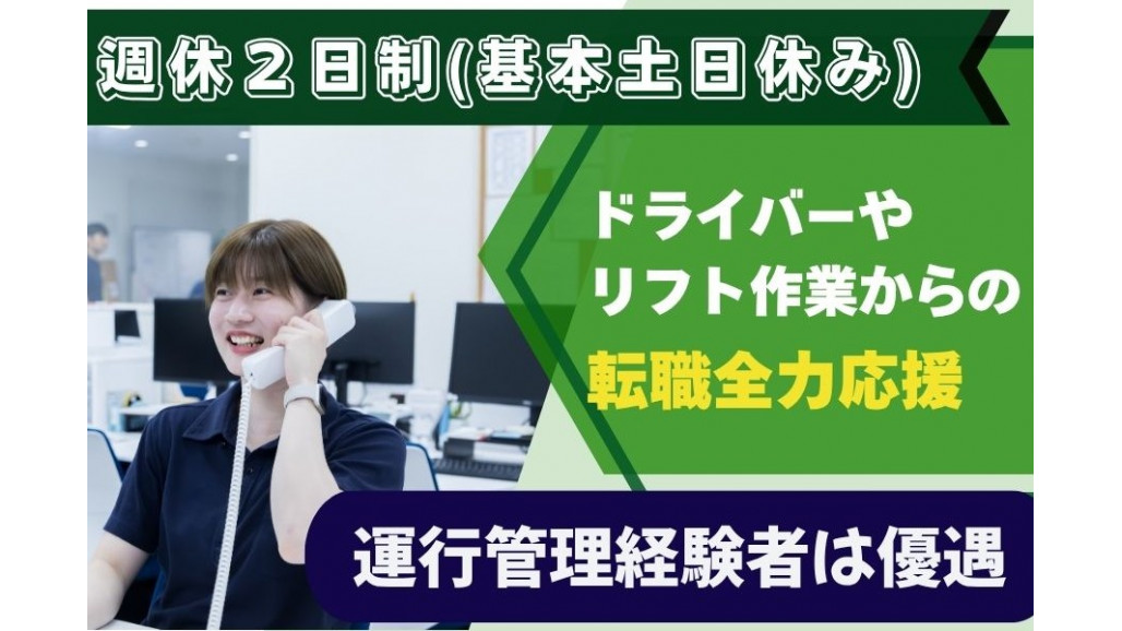 | 職種名 | 総合物流会社の運行管理 長距離の配車担当 基本土日休み 充実のサポート体制 |