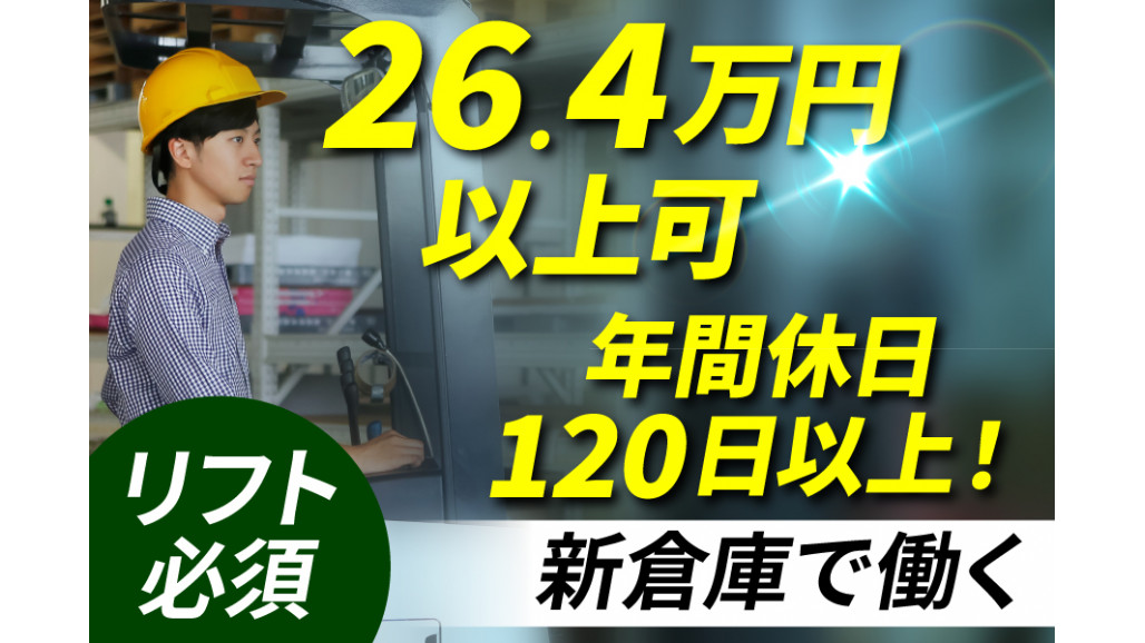【必須条件】 ・フォークリフト免許所持(免許取得制度あり) 【優遇条件】 ・倉庫内での入出庫作業の経験が1年以上ある方 |