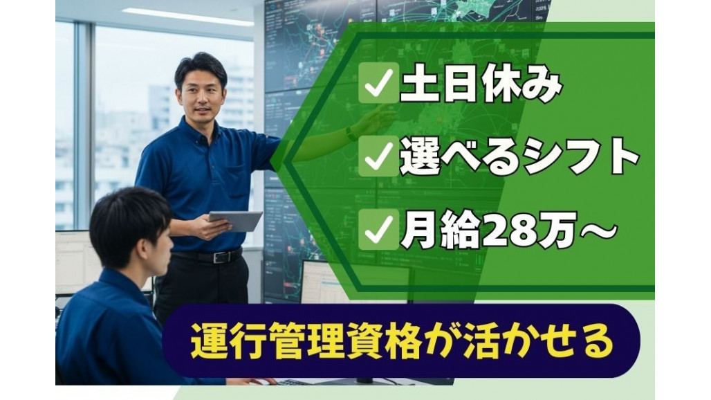 | 職種名 | 運行管理スタッフ 正社員 要資格 土日休み 選べる勤務帯 |
