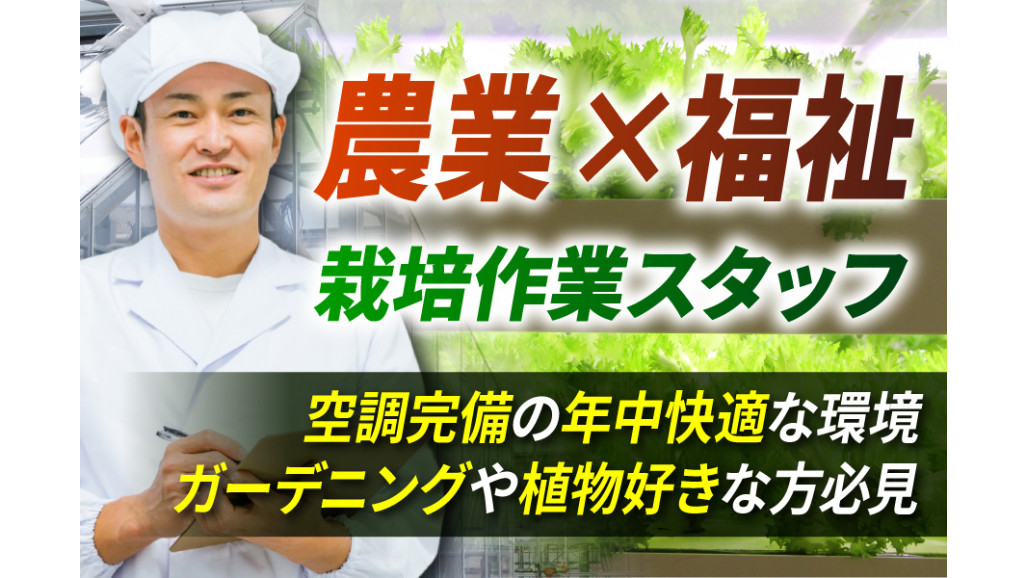 | 職種名 | 室内野菜栽培場での作業スタッフ 空調完備の快適環境 |