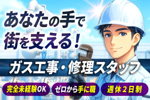 LPガス配管や機器設備の工事・修理スタッフ 完全週休2日制 希望休可 …