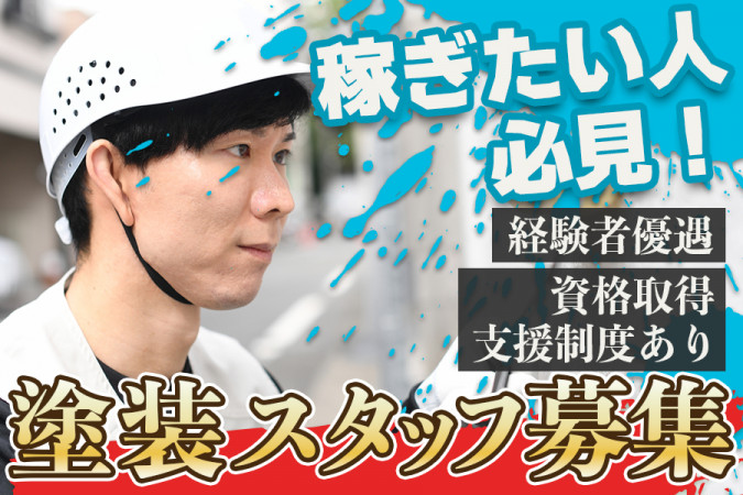 ■必須条件 ・普通自動車免許(AT限定可) ■優遇条件(資格) ・1級または2級塗装技能士 ■優遇条件(経験) ・塗装もしくは現場経験が3年以上ある方 ・塗装経験 ・防水工事 ・シーリング工事 ・戸建て、アパート、マンション等の建築物塗装 など |