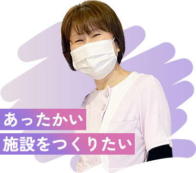「利用者様にとって最期の場所だから、あったかい施設を作りたい」とスタッフに伝え続けています。利用者様に日常のささいな声かけができるスタッフと共に、あったかい施設運営を実現しています。今後はグリーフケアに力を入れたいと考えています。