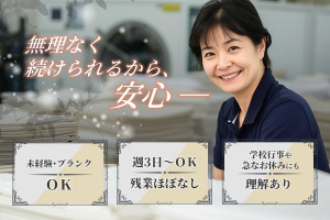 体を動かしながら働きたい方必見!シーツやタオル等のクリーニング物を洗濯し、…