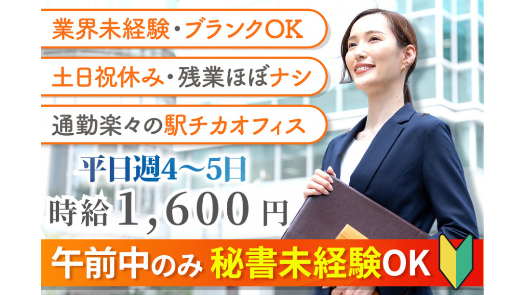 | 職種名 | 秘書 午前だけ勤務 未経験可 |