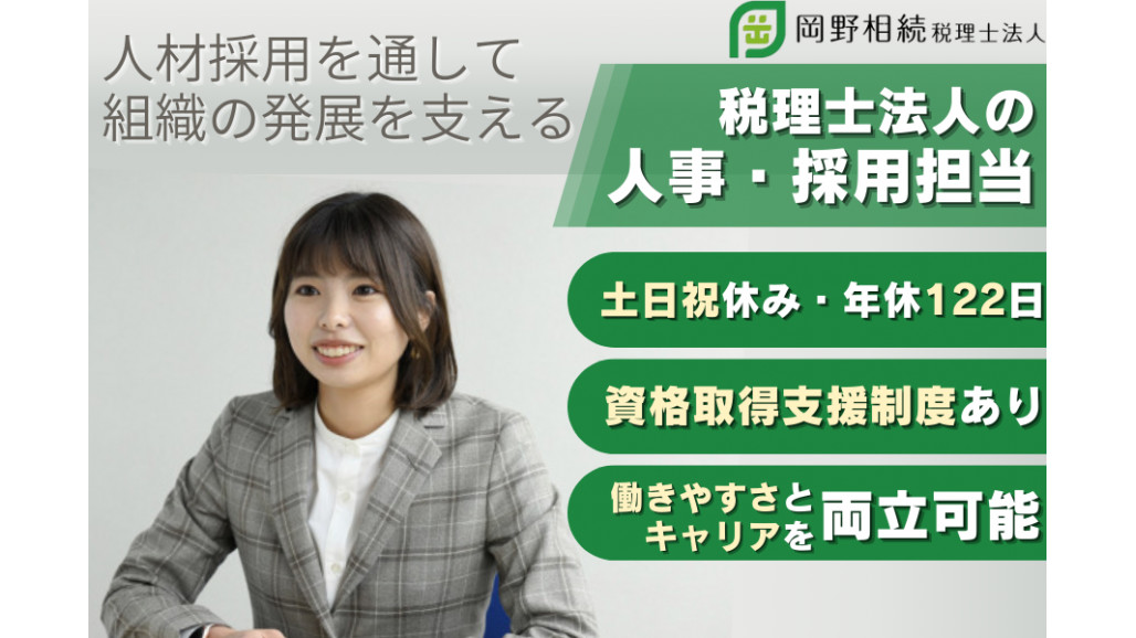 | 職種名 | 税理士法人の人事 採用担当 土日祝休み 資格取得支援制度あり 未来を支える重要ポジション |