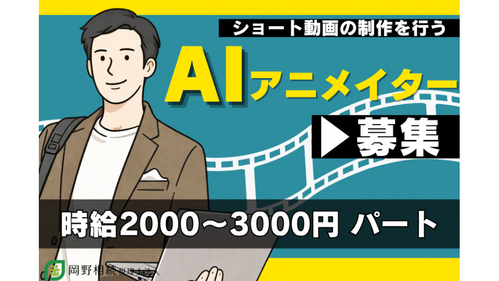 「固いビジネス知識を、わかりやすく・面白く伝える」それがあなたのミッション! 相続税専門の税理士事務所において、新設されるYouTubeチャンネルのショートアニメーション動画制作を一気通貫でお任せします。 あなたのAIスキルが、ここでは正当に評価されます。 【アピールポイント】 ■時給2,000円〜3,000円で安定収入 ■有給休暇の取得率100%!週3日~可 ■業務で使うソフト・機材の購入もOK 【具体的な仕事内容】 30〜60秒程度のショートアニメーション動画の撮影・編集作業をお任せします。 ジャンルはビジネス知識系コンテンツが中心となります。 ・AIによる素材生成 Stable DiffusionやMidjourney等を用いたキャラクター・背景の生成。 ・アニメーション化・編集 RunwayやPika等での動画化、Premiere ProやCapCutを用いたテロップ・音入れ等の最終仕上げ。 ・運用と改善 公開後の反応に応じた編集スタイルのブラッシュアップや、制作工程のテンプレート化。 生成AIを駆使して制作フローを効率化し、「毎日投稿」を実現させることがチーム全体のゴールです。 ============== 実力を発揮できる環境を完備 ============== 社内に動画制作の専門部署がないため、組織の立ち上げメンバーとして大きな裁量権を持って仕事に取り組むことができます。 Stable DiffusionやRunway、Premiere Proなど、使い慣れたツールや機材をベースにした「あなた流」の制作スタイルが尊重される環境です。 企画の意図を汲み取るところから、撮影・編集までをトータルに手がけることが可能です。 「この最新AIを使えばもっとクオリティが上がる」そんな提案もどんどん出してください。業務に必要なソフト・機材は会社負担で購入できます。 =================== 充実した待遇と、安定した働き方が魅力 =================== 時給2,000円〜3,000円という、動画クリエイターとしての専門スキルを正当に評価する高水準な給与体系を用意しています。 週3日から勤務可能ですが、週5日のフルタイム勤務できる方を優遇しており、安定してしっかり稼ぎたい方にも最適です。 有給休暇の取得率は100%と、プライベートを大切にしながらオンオフのメリハリをつけて働けます。 産休・育休の取得率および復帰率も100%(復帰人数8名)の実績があり、ライフステージが変わっても長く活躍できる土壌があります。 =================== 制作に没頭できるクリーンで快適な環境 =================== デュアルモニターの完備に加え、コーヒーや紅茶などのドリンクが飲み放題の設備があり、作業効率を最大化させる環境が整っています。 新横浜駅から徒歩1〜3分以内という好立地で、複数路線が利用でき、毎日の通勤も非常にスムーズです。 服装は自由(ジーンズ不可)、個人ロッカーや冷蔵庫、電子レンジも完備された、過ごしやすい職場です。 【求人ID-MOV03】 |