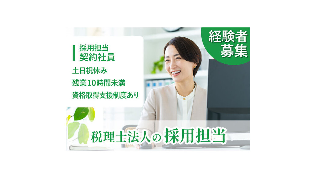 | 職種名 | 税理士法人の人事 採用担当 土日祝休み 資格取得支援制度あり 未来を支える重要ポジション |