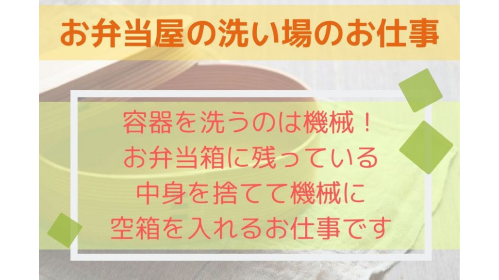 職種名 | 工場内で洗い場スタッフ・週4日 食事支給あり |