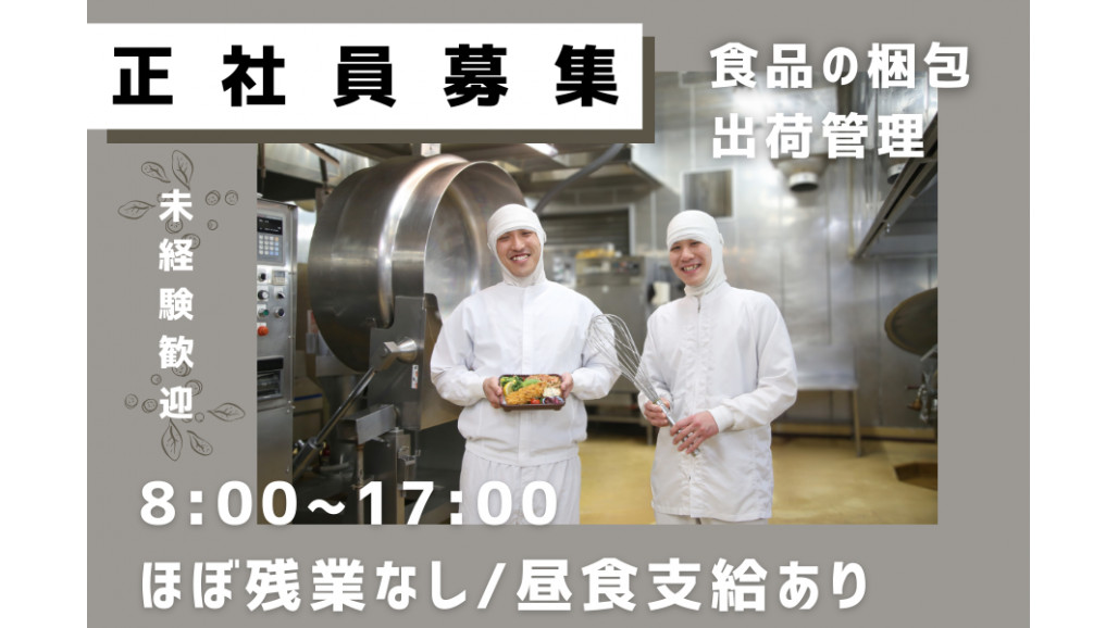 | 職種名 | 正社員 お弁当会社の出荷管理・土日休み・残業少なめ・お弁当支給 |