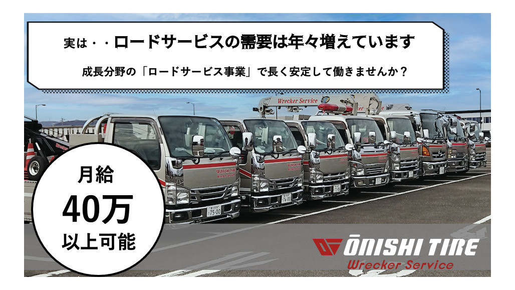 自動車トラブルの現場に出動し、小型~大型車両の応急作業などを行う自動車整備士(経験者)を募集します。 【オーニシタイヤのオススメポイント】 ・心からの感謝の言葉がもらえます ・納得感ある高収入も嬉しい環境です! ・人も車も助け出す、やりがい120%のお仕事 ■具体的な仕事内容 ロードサービスのスタッフとして、自動車トラブル現場での修理、対応、サポートをお願いします。整備の経験を活かして、確かな技術でお客様の安心を守ります。 ・バッテリー上がりの対応 ・タイヤのパンクの修理 ・ガス欠の給油作業 ・事故車や故障車をレッカー車などで移送 ・現場の二次的な事故防止で通行車両を誘導など 【安心研修で、一気にプロへのステップアップ】 業務未経験の方でも安心です。まずは先輩の車に同乗して、仕事の仕方や対応のコツなどを学んでいただきます。 その後、必要に応じて中型や大型免許、ウィンチやクレーン、玉掛などの資格取得の講習に参加し、どんどんレベルアップしていってください! ======================== 映画に登場するような、感動の仕事を ======================== 当社のレッカーサービスは、多くのお客様に寄り添い、まるでドラマの一場面のような感動シーンを数えきれないほど生み出してきました。 ある真冬のこごえる夜にバッテリーが上がり、車が動かなくなってしまったお客様がいました。すぐにレッカーサービスのドライバーが現場に到着、 「寒い中、大変でしたね。でも安心してください。すぐに解決させていただきます!」と笑顔で声を掛け、お客様にも安心していただきました。 別のお客様は水路にタイヤが落ちてしまい立ち往生。でも、レッカースタッフの笑顔と優しい言葉に安心感と勇気を得た、と語っておらました。 こうした心温まるエピソードや感謝の言葉は数知れません。お客様の笑顔や涙、感動や驚きを共有できるのが私たちの仕事の特徴です。 どんな状況でも冷静に行動し、お客様の車だけでなく心に寄り添い、ヒーローの様に人を救う仕事を、ぜひ一緒に体験してみませんか。 ========================= どこよりも働きやすい快適な職場環境! ========================= 給与やプライベートが充実してこそ仕事も頑張れる、それが私たちの考えです。 スタッフのワーク・ライフ・バランスを重視しており、さらなる働きやすい環境の整備に向け、全社をあげて取り組んでいます。 ・地域トップクラスの給与体系 ・週休2日制(月7~9日お休み) ・希望休日の相談可(全日OK) ・会社負担にて資格取得支援制度あり ====================== 転職者の声が語る、魅力あふれる職場! ====================== 「整備士時代より給与が上がりました!」 「本当に、本当に転職して良かった……」 「こんなに人に喜んで貰えるんですね」 など、喜びの声があふれる環境が自慢です。あなたが今まで培ってきた自動車整備士としての力や資格はここで活かされます。納得の転職してみませんか? 【求人ID-SBS】 |