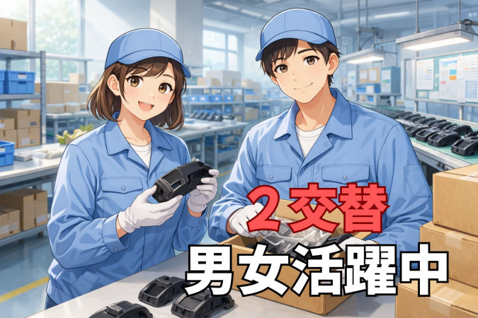 | 職種名 | プラスチック部品の検品 箱詰め作業 未経験可 車バイク通勤可 週替わり2交代制 服装髪色自由 |