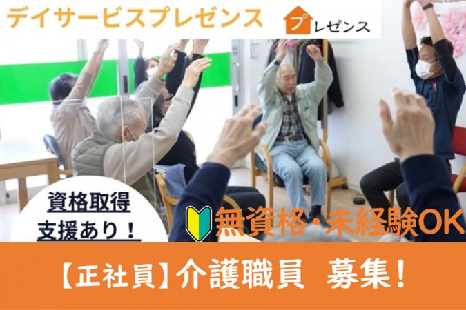 デイサービスプレゼンスの新規介護スタッフ募集! 無資格、未経験だけど介護の仕事をはじめようと思っている方! 介護の仕事をしたいと思っていても、将来働き続けることができるのか不安に思っている方! デイサービスプレゼンスでは、人と人の繋がりを大切にし必要とされる存在、喜びを実感できる施設を目指しています。 一緒にお仕事しませんか? 株式会社PRESENCEは、横浜市発の「みんなにやさいしい介護のプロを目指す」プロジェクト2018、2019年に受賞された認定事業所です。 【具体的な仕事内容】 ・身体介護(見守り、移動介助) ・入浴(洗体補助、着脱補助) ・排泄介助 ・食事(配膳、下膳、見守り、食事介助) ・レクリエーション(実行、企画) ・介護記録 など 【デイサービスプレゼンスの魅力】 ===================== 若い世代が活躍しやすい環境 ===================== 30代以下を中心に幅広い年代層の職員がいるので、同年代での意見交換はもちろん困った時はベテランの職員に相談することも出来ます。 ========================== 業務効率ツールで手書きの手間を削減 ========================== 業務上の入力作業はiPadを使用して手書き作業の負担を軽減しています。 ========= 駐車場無料 ========= マイカー通勤・バイク通勤が可能で、駐車場も無料でご利用いただけます。 ==================== 資格取得支援・独立支援あり ==================== 介護初任者研修、介護福祉士、ケアマネジャーなどの資格取得や、起業や独立を目標にしている方を支援します。 =================== 職員の生活を支援します =================== 子育て中の方への支援をはじめ、生命保険や不動産、相続関係、親族の方の介護など、職員のサポートをしています。 ぜひご応募くださいね。 いきなりの面接は不安な方には施設見学も大歓迎です。 働き方の相談や、仕事内容のご質問などのお問合せもお気軽にご連絡ください。 ★体験入社可能です! ・面接後、希望者は1日(半日もOK)体験入社可能です。 ※お給与・交通費ともに支給致します。 |
