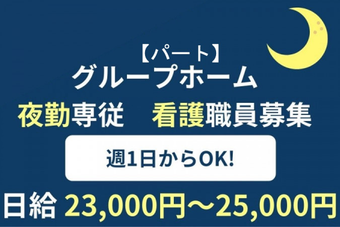 | 職種名 | 夜勤専従スタッフ(看護職) 週1日から可 グループホーム |