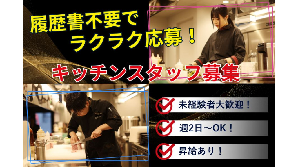 | 職種名 | ディナータイムのみ オシャレな焼肉店でのキッチンスタッフ 未経験可 シフト柔軟で働きやすい環境 まかないあり |