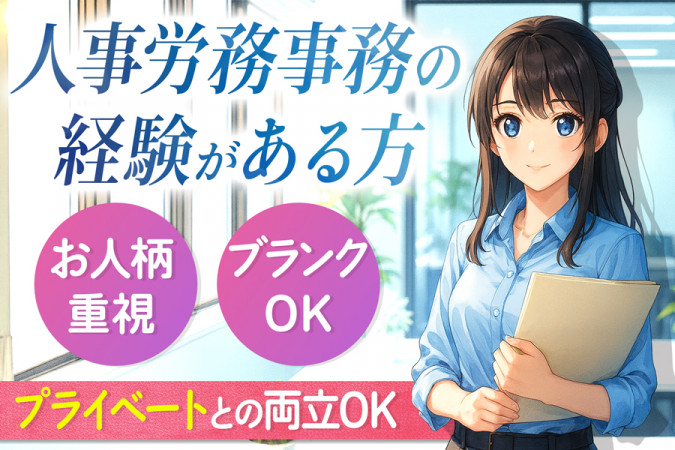 | 職種名 | 人事総務 経験者のみ サポート体制充実 働きやすい職場で腰を据えて働ける |