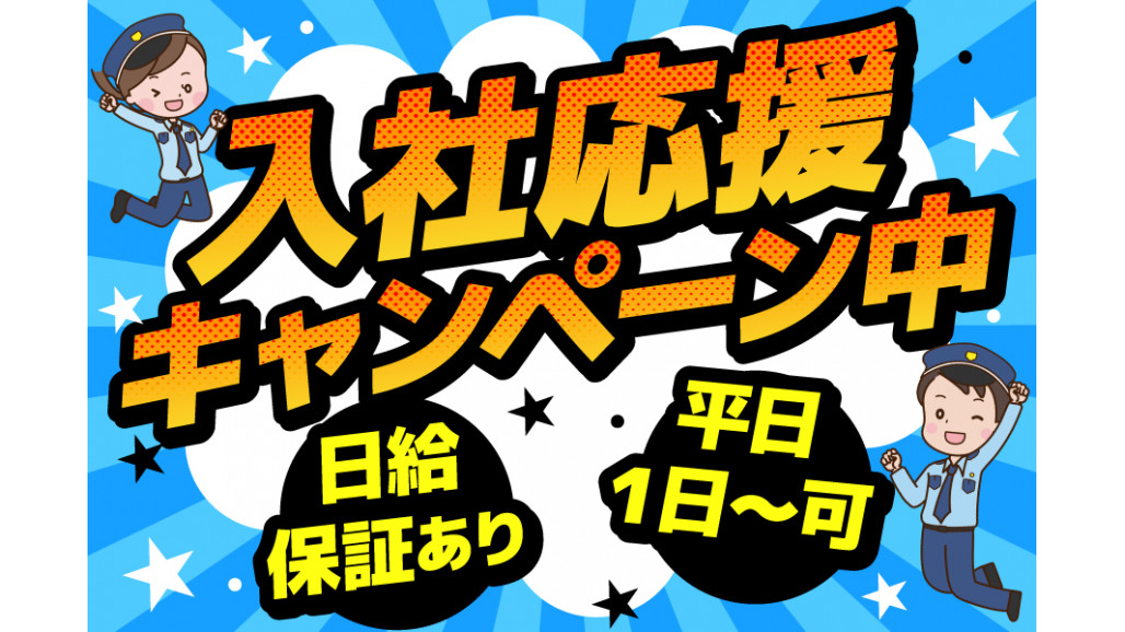 | 職種名 | 警備・誘導 未経験可 平日1日~勤務 即日勤務も可 |