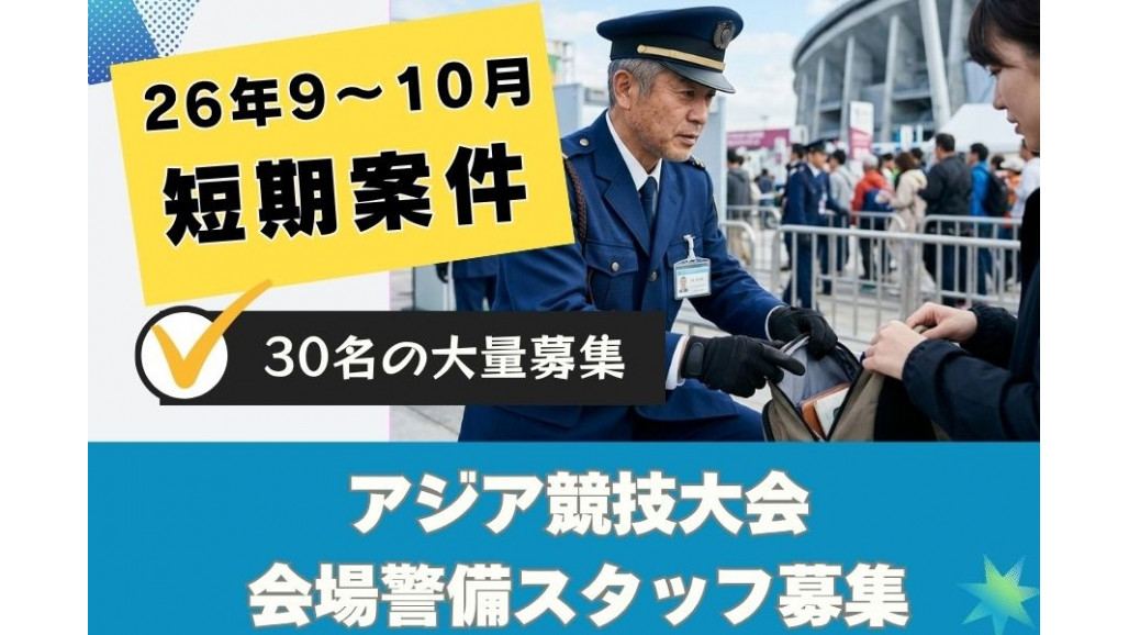 | 職種名 | 国際スポーツイベント アジア大会の会場警備 26年9~10月短期案件 |