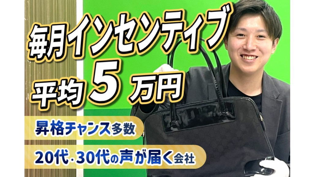 お客様の「思い出」を預かる、少し特別な仕事。 高価なブランド品だけでなく、長く大事にされてきた日用品や趣味のアイテムなど、いろいろな背景を持つ「モノ」と出会い、心が豊かになります。 大切なのは、知識でも、経験でもなく、お客様と品物に「丁寧に向き合う姿勢」です。まっすぐで素直な人ほど、ぐんぐん吸収して成長できます。 【おすすめポイント】 ・マニュアル+ロープレで丁寧に習得できる ・接客するほど新しい知識が増えていく面白さ ・上司との距離が近く、アイデアがすぐ形になる ・インセンティブで頑張りが見える化される環境 ・20代で店長も!早期キャリアアップの機会あり ■具体的な仕事内容 三重エリアを中心に、「買取店わかば」のFC運営を行なっている当社にて、バッグ、時計、貴金属、金券などの買取業務をお任せします。 全国300店舗の中で20店舗のみが選ばれる「優秀店舗賞」を当社の店舗が2年連続で受賞しています! ・店舗での接客・ヒアリング ・持ち込まれた商品の簡単な査定 ・買取金額の提示・ご説明 ・PCでのデータ入力 ・その他店舗運営に関わる業務全般 【1日の流れ】 ▼09:40 開店準備(清掃・メールチェック) ▼10:00 開店(接客・査定・事務作業) ▼19:00 閉店(売上報告・片付け) ▼19:10 退勤 ※残業ほぼなし 【仕事のポイント】 ・1日の対応数:5~7組程度 ・1組あたり時間:20分程度 ※本部の専門チームが査定をサポートするので安心です。また、査定中はお客様が買い物に出ることが多く、焦らず丁寧に向き合えます。 ============== はじめてでも成長が早い理由 ============== 未経験スタートの社員がほとんどですが、ひとり立ちまでのスピードは驚くほど早めです。その理由は、座学より実践を重視した研修。 お客様との会話の入り方、商品の持ち方、査定のチェックポイントなど、細かい部分まで先輩が横について一緒に進めるスタイルです。 査定は本部の専門部署とテレビ電話やチャットでできるため、難しい知識を覚える必要はありません。 商品に触れるたび「なるほど、こうやって確認するんだ」という気づきがあるので、一つの案件が終わるごとに自然と理解が深まっていく環境です。 分からないことはその場で確認できるため、つまずきが少ないのも特徴。素直に吸収しようとする姿勢があれば、短期間で「接客も査定も安心して任せられる買取スタッフ」へ成長できます。 ================== 20~30代中心の、動きやすいチーム ================== 当社は創業4年目。上下関係が強すぎたり、固いルールに縛られたり…という雰囲気はなく、20~30代が中心となって店舗を動かしています。 社歴や年齢に関係なく、良い提案にはしっかり耳を傾けてくれるのがこの会社の働きやすさ。 実際に、社員の声から生まれた「夏季限定の制服」など、アイデアがそのまま採用されたことも。 また、週次のミーティングでは、店舗運営の相談をしたり、「こうしたらもっと良くなる」という意見を気兼ねなく発信したりできます。 店長や本部との距離も近く、役職がつく前から「店舗づくりの当事者」として関わる実感を持てるのも魅力。若手でも責任ある仕事を任されるので、仕事の面白さも大きくなっていきます。 ================== 収入アップもキャリアアップも狙える ================== 「働くからには、収入もキャリアも伸ばしたい」──そんな想いに応えられる環境です。 毎年の昇給に加えて、成果はインセンティブとしてしっかり還元。買取業務は「売る」仕事ではないためノルマはありませんが、丁寧な接客が評価につながり、収入アップにも直結します。 キャリアステップも分かりやすく、「買取スタッフ→店長→マネージャー→エリアマネージャー→部長(本社業務)」と段階を踏んで成長できます。 実際に、未経験入社からわずか1~2年で店長に昇格した社員も在籍。急成長中の企業だからこそ、役職に挑戦できるチャンスが豊富にあります。 「責任ある役割に就きたい」 「効率的に経験値を積みたい」 そんな上昇志向を持つ方なら、短期間でぐんぐん成長できる環境です。ここでの経験が、あなたの「伸びしろ」を「確かな実力」に変えてくれます。 【求人ID-MIE】 |