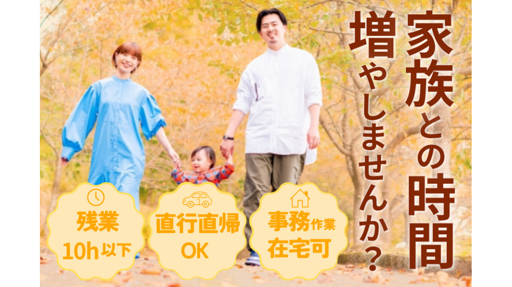 8:00~17:00(所定労働時間8時間/休憩60分)※現場による ★残業少なめ |