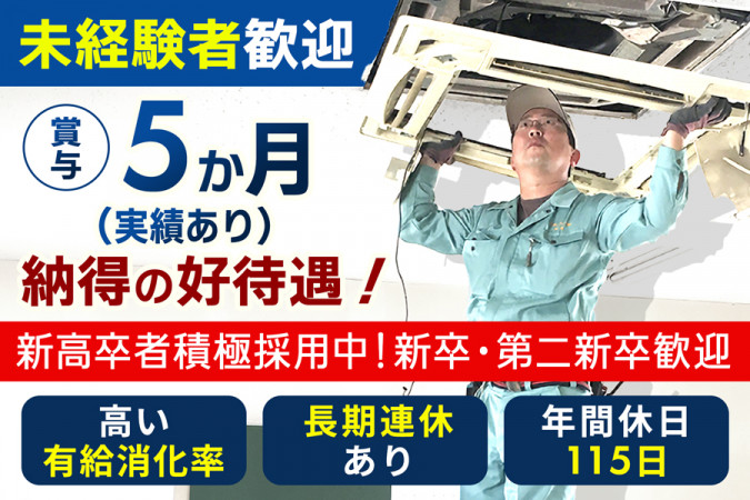 新卒・第二新卒の皆さん、空調・衛生設備の管工事施工管理者に挑戦してみませんか。 空調設備工事や給排水設備工事、衛生設備工事、上下水道工事、配管工事といった各種工事を通して、製鉄所内の人々の仕事を側面から支えます。 建設業界や設備業界に興味がある、学生時代にエアコン取付のアルバイトをしていた、など、少しでも気になる方はぜひご応募ください。 「寮完備(条件あり)」「資格取得支援あり」「年間休日115日」という好待遇の職場です! ハローワークなどで新卒・第二新卒向けの正社員求人をお探しの方、施工管理者としてのキャリアパスをお考えの方、ご連絡お待ちしています! 当社は、創業56年の安定企業!学歴不問、高卒の方も多く活躍しています。なんと空調最大手メーカーダイキン工業様の数少ないダイキンプロショップです。 |