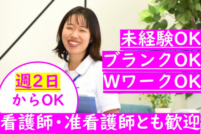 ■正看護師または准看護師 ※いずれも大歓迎です。 ●年齢不問 ●経験不問 ●WワークもOK! ●ブランクある方も大歓迎! |