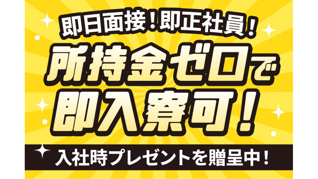 即日面接!履歴書不要!最短1日のスピード採用!今すぐ安定した生活を手に入れたい方、必見!