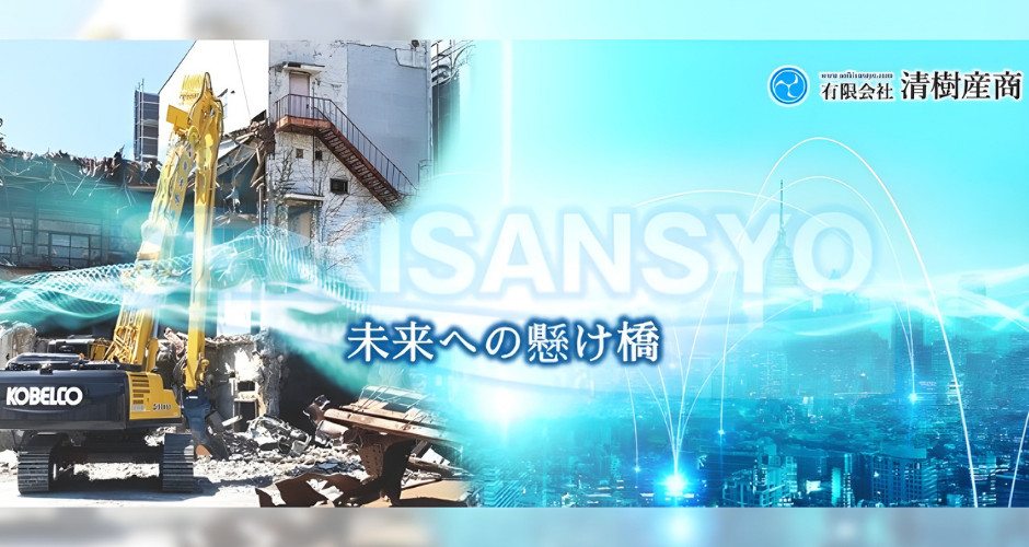 有限会社清樹産商は、SRC造・S造・RC造・W造などの解体工事を中心に、土木工事や舗装工事、仮囲い・足場の設置、重機や重量物の回送まで幅広く対応しています。