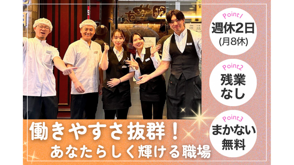 外食・飲食業界のキッチンスタッフ(調理・接客、調理補助、ホール・キッチンスタッフ、焼肉屋スタッフ、レストラン キッチン)で未経験から働きたい方。キッチンスタッフや調理・接客業務経験者の方。基本残業なし、賞与あり(年2回)、週休2日制、休日出勤なし、駅チカの焼肉店・焼肉屋でキッチンスタッフとして働きたい方。飲食未経験、フリーター、高卒、ブランクOKで学歴不問、40代も活躍している職場で働きたい方。キッチンスタッフとして正社員で働きたい方。キッチンスタッフを新着急募。キッチンスタッフ、正社員、飲食店、調理、週休2日。