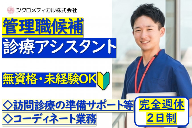 訪問診療の準備やサポートなどコーディネートを行う、診療アシスタントのスタッフ募集! 医師とチームを組み、患者様やご家族と診療所の橋渡し役としてニーズに寄り添い、安心して在宅療養生活を送って頂くためのサポートするお仕事です。 ドクター1人とアシスタント1名の2名で同行します。 ◎面接・ご入社時期について ・面接日のご希望ご相談に応じます。 ・ご入社時期ご相談に応じます。(早めのご入社も可能です。随時研修開始いたします。) ※内定が採用予定人数になり次第、募集を終了いたしますので、お早めにご応募ください。 ◎ポイント ・無資格・未経験OK! ・完全週休2日制!夏・冬長期休みあり! ・丁寧な研修(3ヶ月は同行によるOJTでの研修メイン) ◎コミュニケーションが活かせるお仕事 ・クラーク経験者の方特に歓迎! ・MR(医薬情報担当者)、MS(医薬品卸販売担当者)の経験者歓迎! ・接客・サービス業・営業などの経験者歓迎! ・医療ソーシャルワーカーや介護・相談員の経験者歓迎! ※新卒・第二新卒も歓迎です! ■詳しい仕事内容 当社がパートナー契約をしている在宅クリニック(みんなの在宅クリニック)での診療アシスタント業務 ●医師と患者様のもとに伺い診療をバックアップ(1日5~10件の施設訪問) 現地への車の送迎や、体温や血圧測定のサポートから医師がすぐに診察できるように使用する医療器具の準備等をお願いします。 診療中の会話内容を電子カルテに記録したり、診療レポートの作成をしたり、医師が診療に専念できるようサポートします。 医療知識や経験が無くても、しっかりと研修もあるので安心です。 ●患者様やご家族の相談対応 「症状が日々変化する中で、どうやって自分らしく過ごすか」を患者様やご家族と一緒に考え、意思決定を行います。 患者様やご家族は、ご自身の希望や不安をうまく言葉にできないことが多いです。 対話を重ねる中で患者様やご家族の本音を汲み取り、希望に沿った生活環境を整えるお手伝いをします。 ●チームで環境調整 患者様やご家族とお話した内容を元に、医師やケアマネジャー、介護施設などの管理者・看護師・ヘルパー、病院の医療連携室等、 いろいろな方と連絡や調整など、柔軟性のある対応と関係構築が大切です。他職種と連携・協力しながら、 患者様が最期を迎えるまでの時間を、自分らしく過ごせるようサポートします。 ※メールの送受信、インターネットの閲覧など基本的なPC作業あります。 ■管理職候補・幹部候補としての採用 将来は、クリニックの運営管理・事業企画や戦略を担う事務長や、マネジャー・管理職・法人の幹部候補としてキャリアアップが目指せます。 ■勤務先 【一般社団法人拠 みんなの在宅クリニック 本院】〒461-0022 名古屋市東区 東大曽根町36-13 愛知県で初めての一般社団法人(非営利法人)運営による訪問診療を行う在宅クリニックです。 ■シクロメディカル株式会社について 訪問診療クリニックの開業を中心に訪問医療を地域で展開できるシステムを構築しています。 また、診療所向けに医療事務などのバックオフィス業務委託も請け負っています。 <事業内容> ・開業支援 ・運営支援 ・医療事務代行 ・夜間時間外対応 いきなりのご応募が不安な方は、まずはお問合せだけでもOKです! お気軽にご連絡くださいね。 ご応募・お電話お待ちしております。 【求人ID-SKR】 |