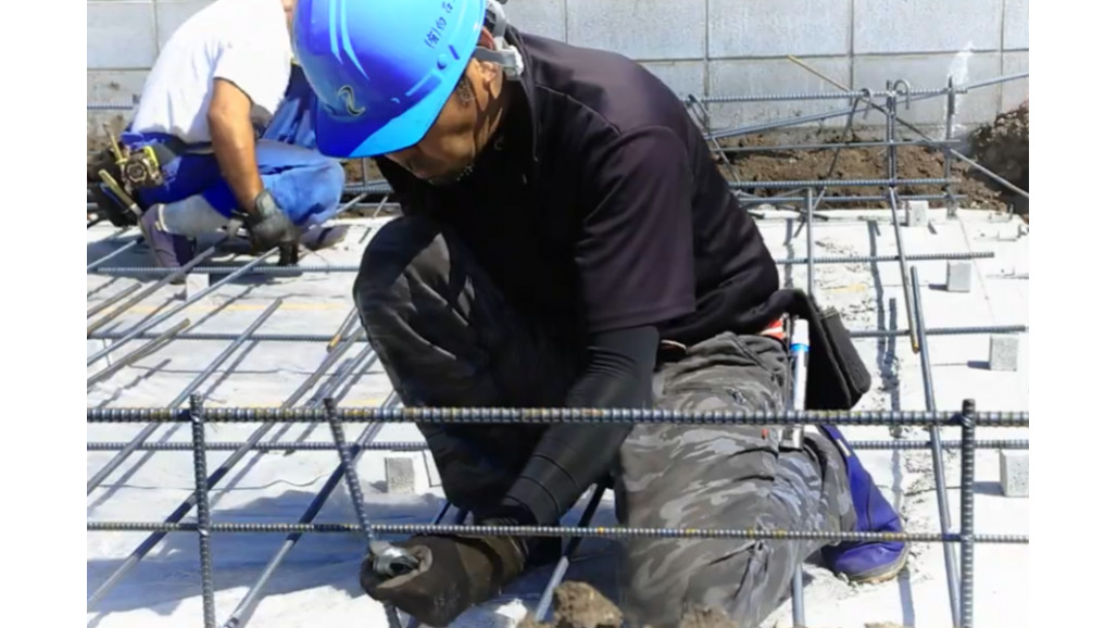 捨てコン・砕石の上に鉄筋を決められた位置に並べ、結束線で固定します。基礎の配筋は構造計算により決められます。 墨出しの線に基づいて外周部に基礎型枠を組んでいきます。