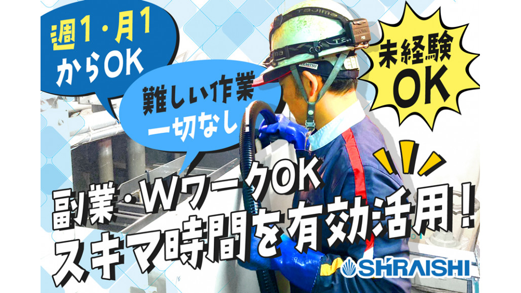 | 職種名 | エレベーターや工作機械のオイル交換作業スタッフ 未経験可 週1日から勤務可 シフト制 |